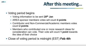 As a member in good standing you are invited to vote for one of the 7th AREA-directed research project topics.